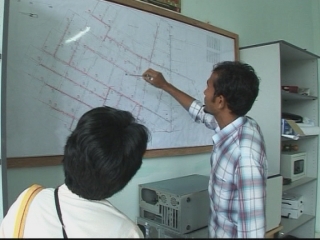 5. Wide shot, staff at centre conducting session to review awareness and publicity material from recent child protection campaigns