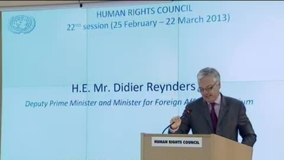 H.E. Mr. Didier Reynders, Deputy Prime Minister and Minister for Foreign Affairs, Belgium, High-Level Segment - 6th Meeting, 22nd Regular Session Human Rights Council (25th February - 22nd March 2013)