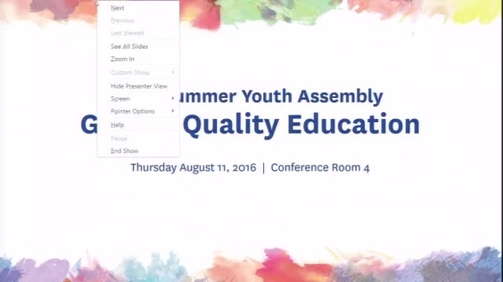 Panel on Sustainable Development Goal 4: Quality Education 2016 Summer Youth Assembly at the UN Theme: Transform Vision into Action