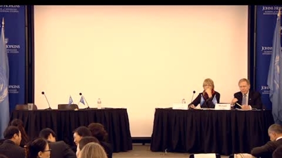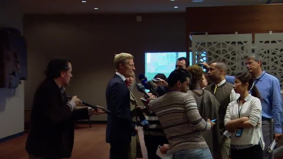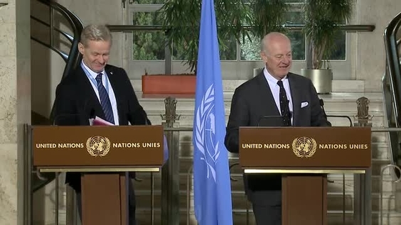 The U.N. Special Envoy for Syria, Mr. Staffan de Mistura, and his Special Advisor, Mr. Jan Egeland speak to the press following a meeting of the International Syria Support Group's Humanitarian Access Task Force.