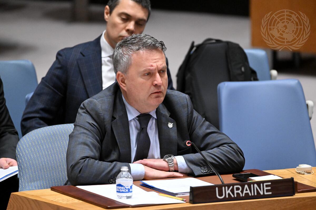 Sergiy Kyslytsya, Permanent Representative of Ukraine to the United Nations, addresses the Security Council meeting on threats to international peace and security.
