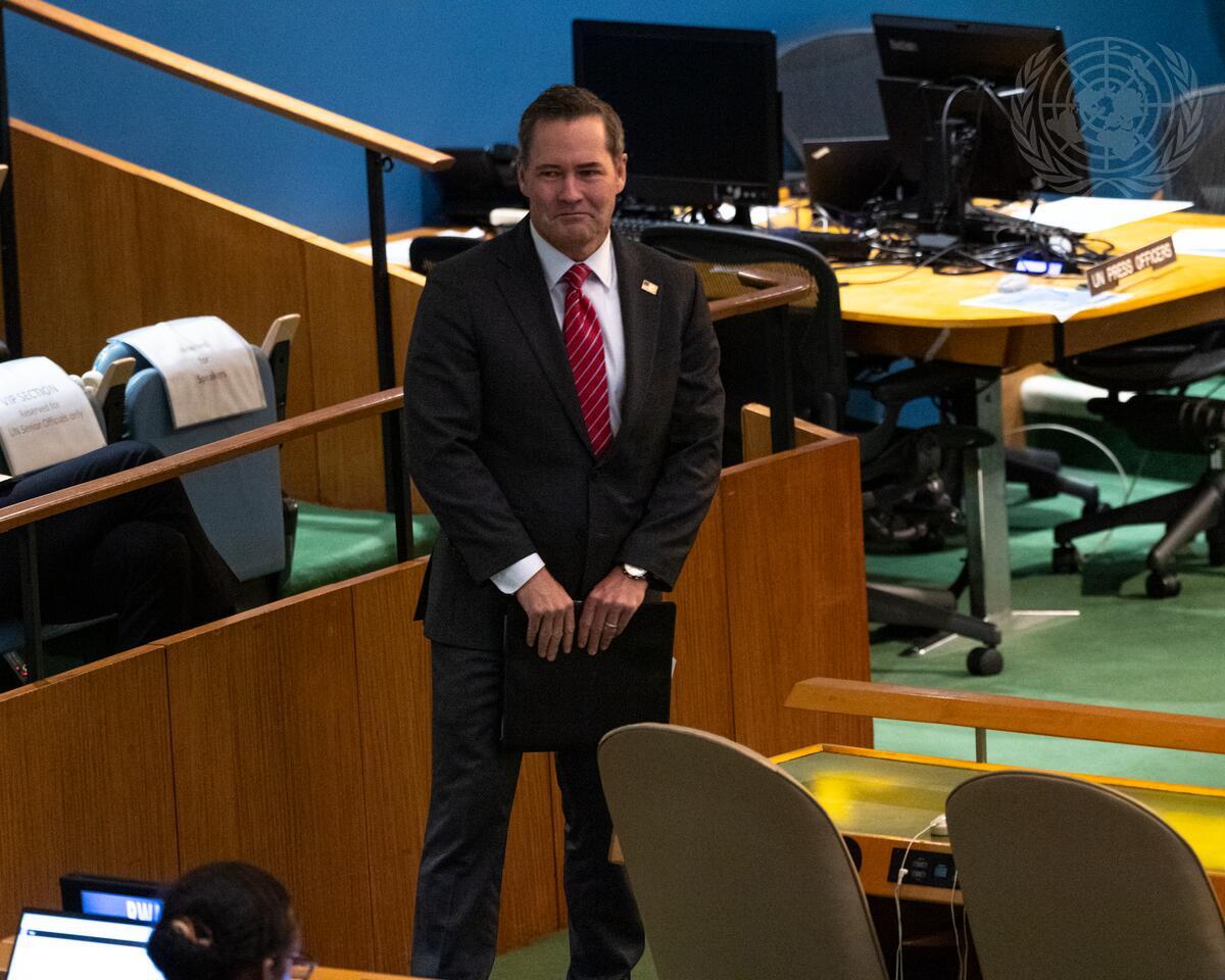Michael G. Waltz, Permanent Representative of the United States of America to the United Nations, stands in the General Assembly Hall during the 15th plenary meeting of the General Assembly on the use of the veto at the 10000th meeting of the Security Council, held on 18 September 2025 in connection with the item entitled "The situation in the Middle East, including the Palestinian question".