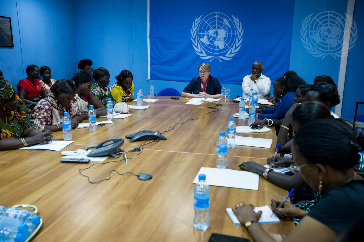 Ellen Margrethe Løj (left, at head of table), Special Representative of the Secretary-General and Head of the UN Mission in South Sudan (UNMISS), makes remarks at the Open Peace Forum. Participants included representatives from the South Sudan Women Empowerment Network (SSWEN), the UNMISS Gender Unit and UN Women. The group presented their draft plan for implementation of UNSCR 1325 in South Sudan.