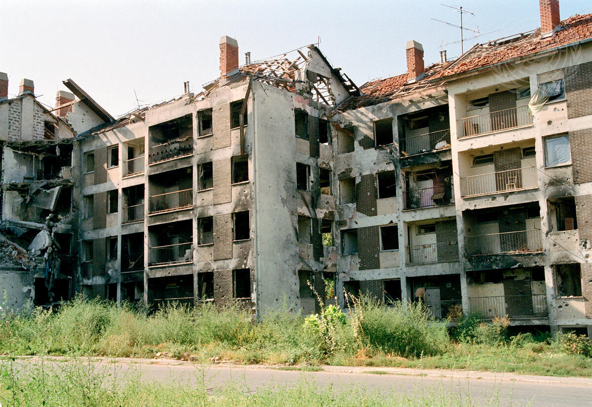 Destroyed apartment buildings, damaged during the heavy fighting that occurred in Vukovar during the winter of 1991.