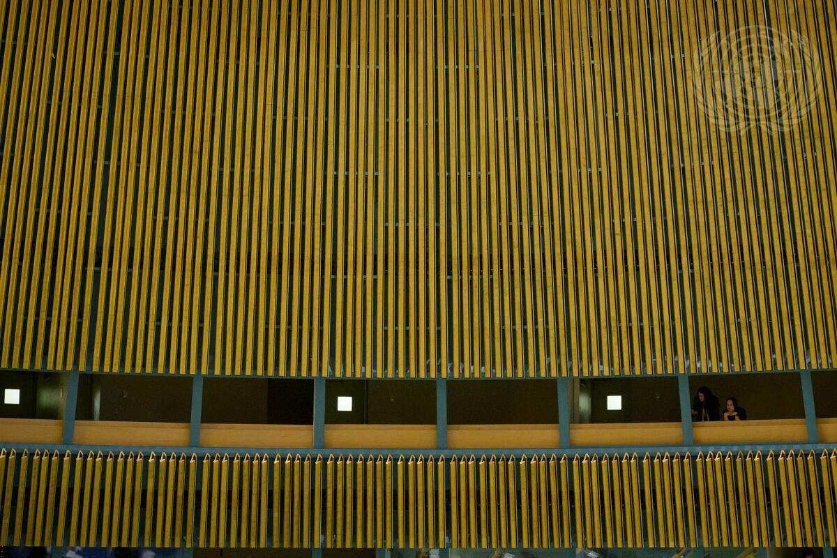 A detailed view inside the General Assembly Hall during the opening of the sixty-seventh session of the Commission on the Status of Women (6 to 17 March 2023). The priority theme for the 67th session is "Innovation and technological change, and education in the digital age for achieving gender equality and the empowerment of all women and girls".
